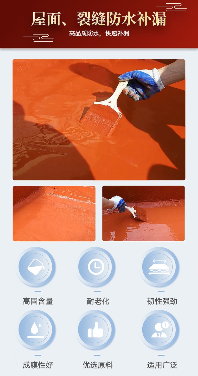 品牌:固恩杰 规格:5KG 型号:高弹外露型 保质期:18月 生产地:广州 特色服务:免费样品 产品名称:屋面红香蕉防水涂料 应用范围:阳台、天沟、铁皮房、外墙等。